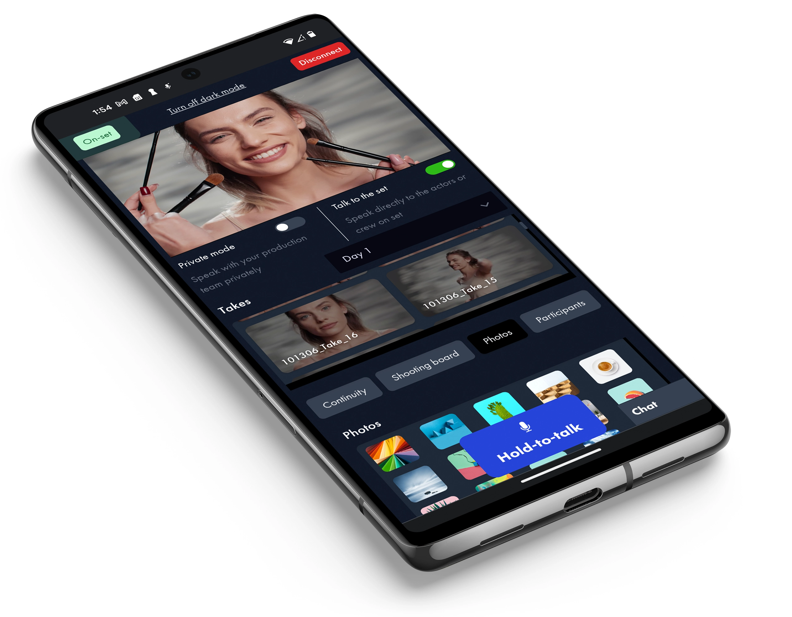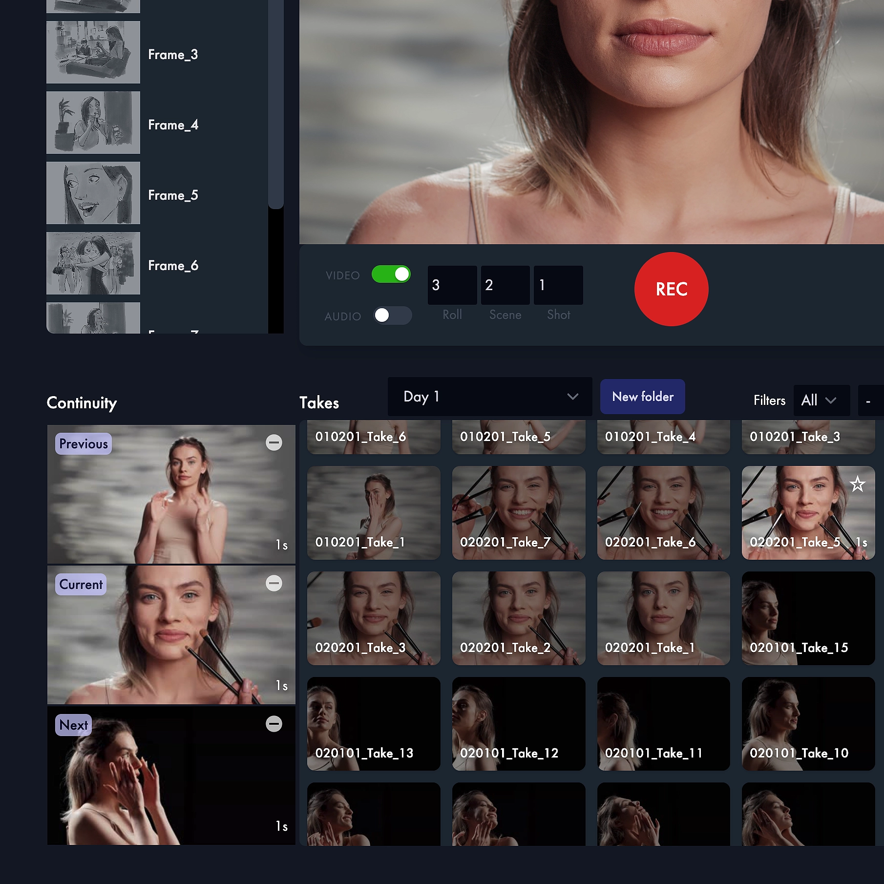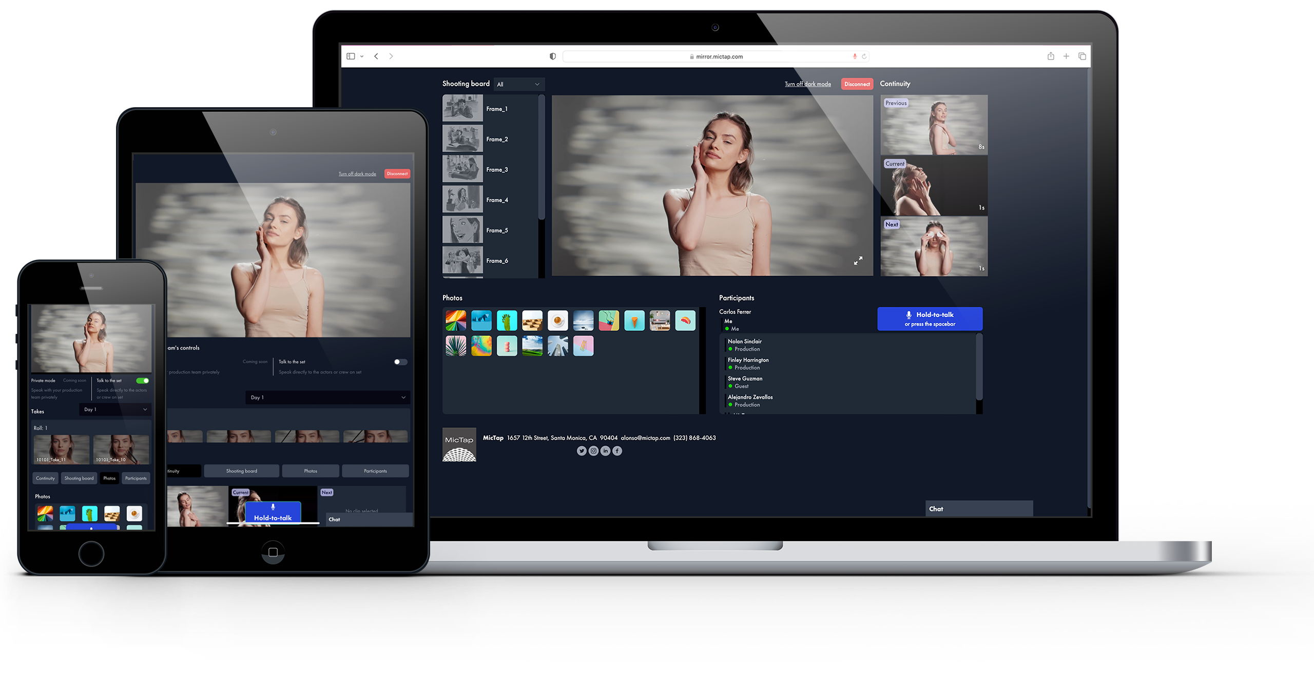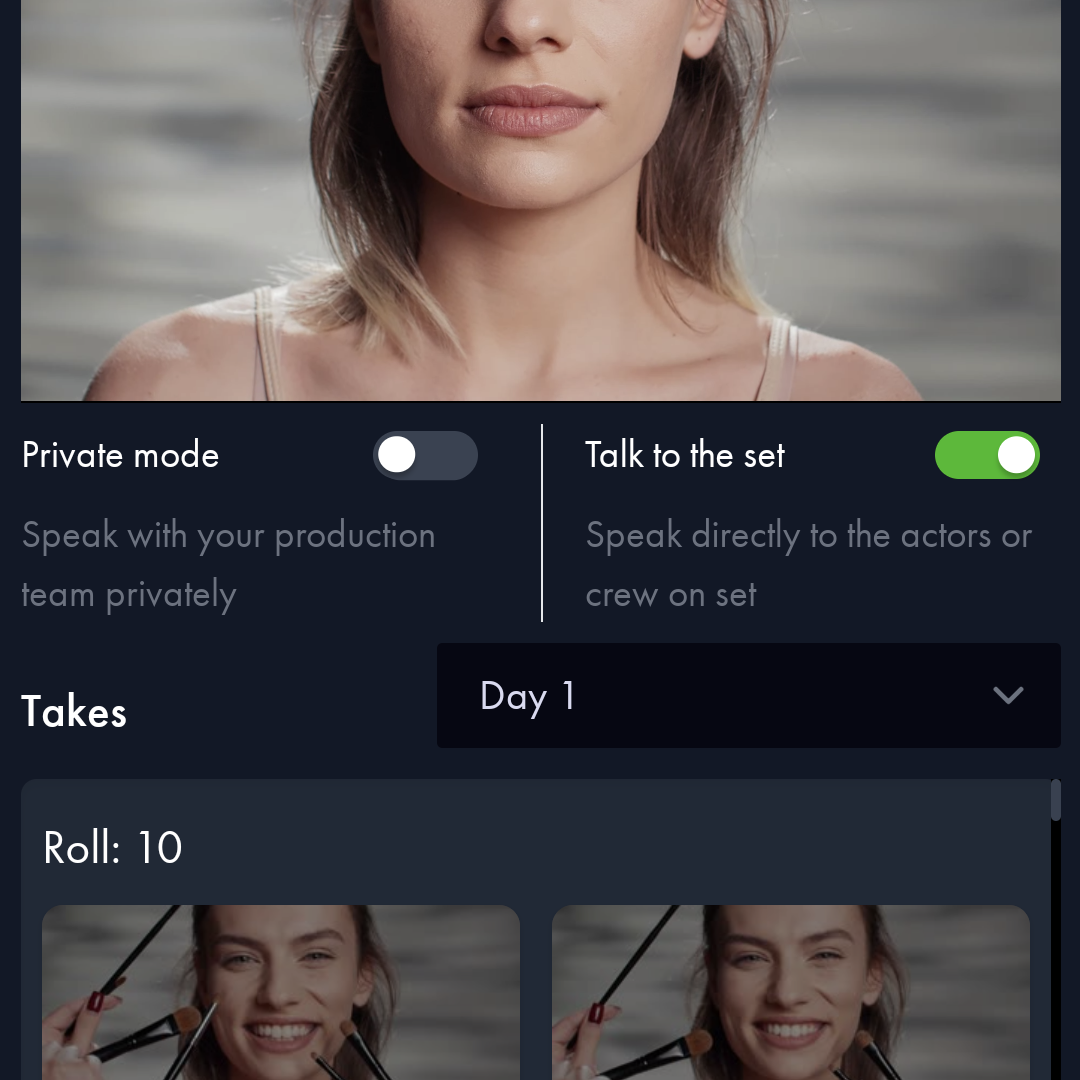 It also comes with video assist tools such as logging, recording, and playback features, continuity tracking, shooting boards, reference photos, private mode, on-set talk, multi-aspect ratio guides, and viewport rotation for vertical videos. During the shoot, participants can review takes as needed. Afterward, up to two team members can access recordings for review and prep for the next day's shoot.
